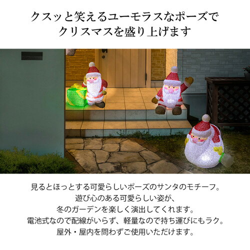 バリエーション 電池式 3Dクリスタルモチーフおでむかえサンタ 電池式 3Dクリスタルモチーフまちくたびれサンタ 本商品の 販売ページです 電池式 3Dクリスタルモチーフぐったりサンタ 電池式 3Dクリスタルモチーフよじのぼりサンタ 型番:LGB-WS03