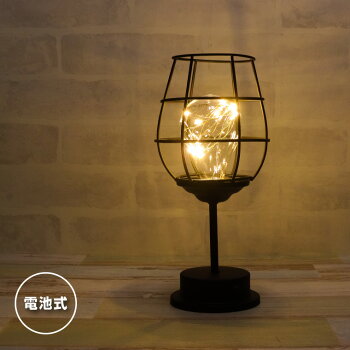 テーブルランプ アンティーク ワイングラス型 電池式 おしゃれ LED 電球色 テーブルライト ライトスタンド ブラック アイアン インテリア 照明 卓上ライト レトロ ヴィンテージ 北欧 かわいい 雑貨 プレゼント