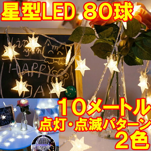 星型 イルミネーション LEDライト 80球 10メートル 電池式 屋内用 屋外用 クリスマス 防滴 防水 点滅点灯パターン 暖色 電球色 昼白色 カラフル 飾り 電飾 防犯 イルミネーションライト イルミネーション 室内 イルミネーション ライト 部屋